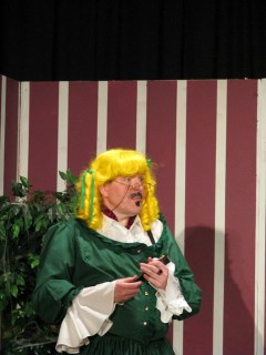 Add more raging hormones: the part of Colonel Chickenwing, whose monolog opens the play, was given to a young man who felt the need to leave practice after his one-and-only-yet-pivotal scene to go to his girlfriend’s house to ooo and aaa sycophantically over her. Said young man not realizing that it is possible, indeed likely, that we might need to go over his scene more than once.